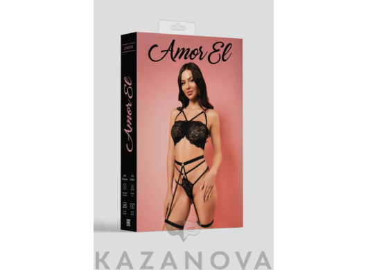 В комплекте: бюстгальтер, пояс для чулок, стринги.