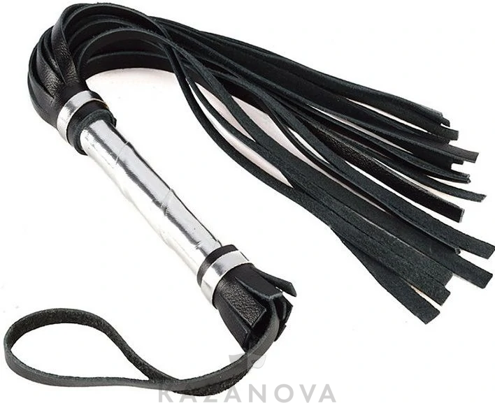 Флогер из натуральной кожи черно-серебристый 40 см